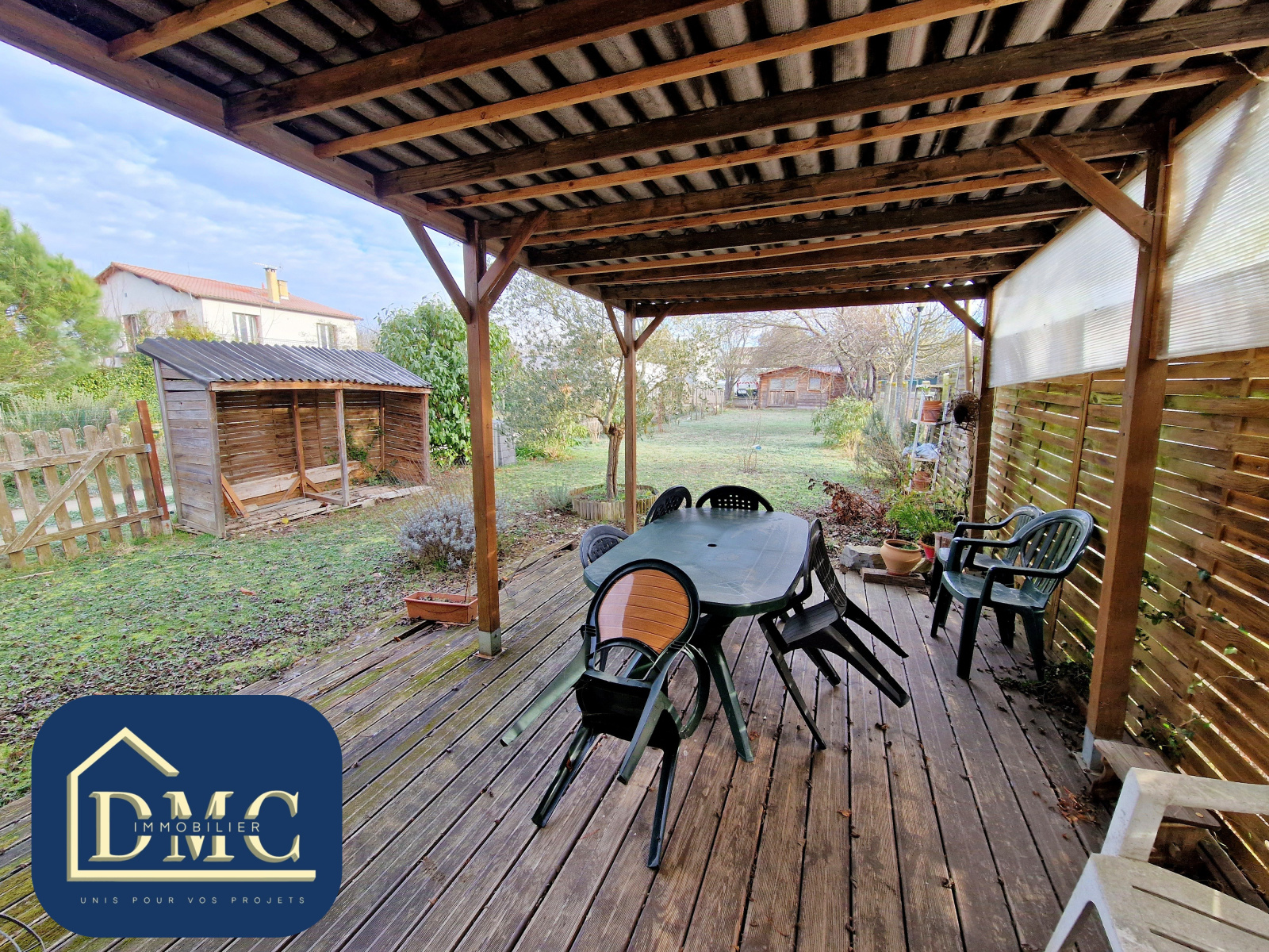 Côté extérieur, vous pourrez profiter d'un agréable jardin arboré de 453m² clos, avec sa terrasse couverte.
