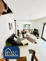 Maison de village T3 d'une surface de 97m². Au rez-de-chaussée vous trouverez une entrée qui donne sur une pièce de vie lumineuse. Une cuisine, et une salle de bain. A l'étage vous profiterez de deux chambres, dont l'une avec une terrasse surplombant le jardin. Une salle d'eau et un WC.